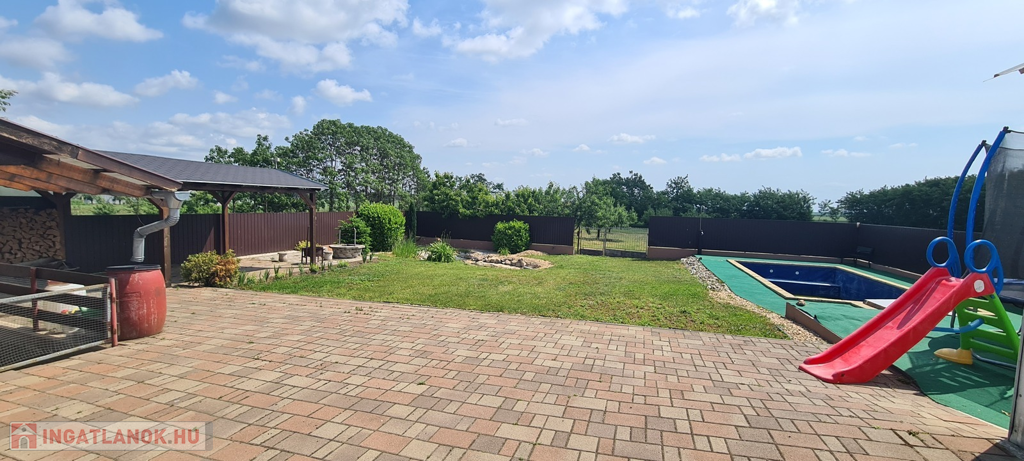Kótajban eladó egy aszfaltozott utcában található, szép állapotú 110 nm-es, 3 szoba +nappalis-étkezős családi ház, 2623 nm-es parkosított telekterülettel, 30 nm-es medencével.