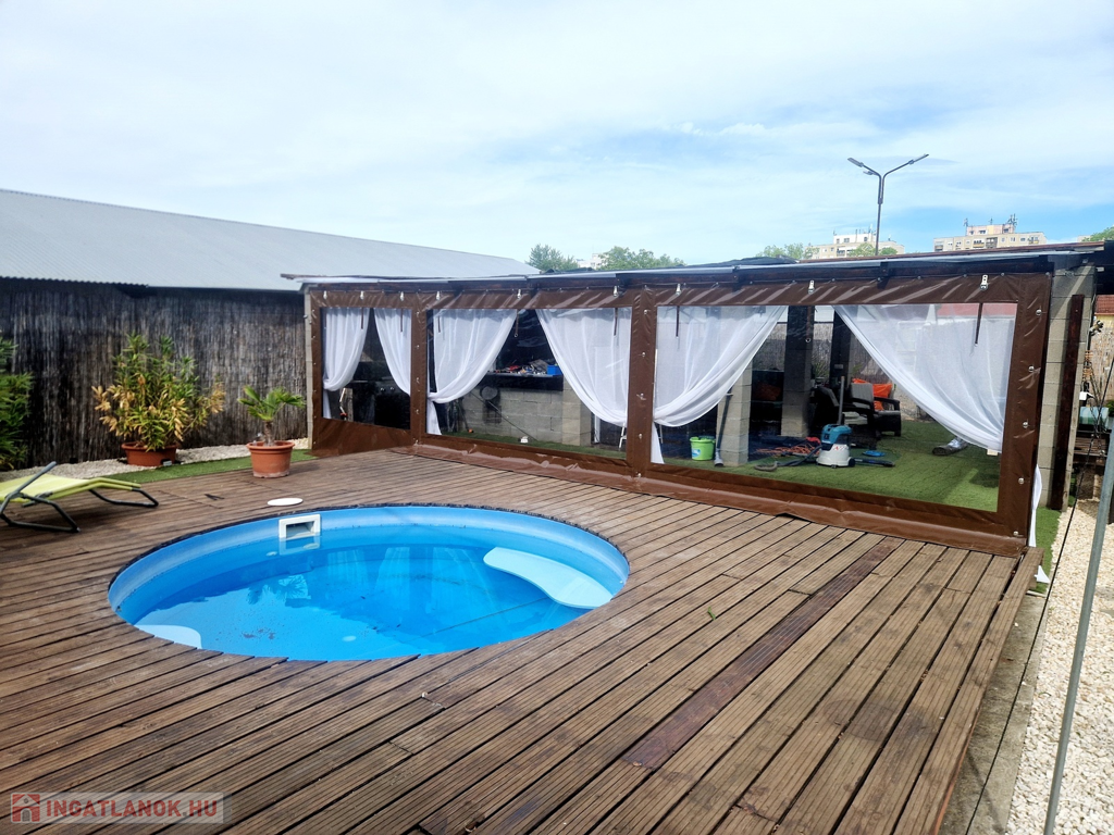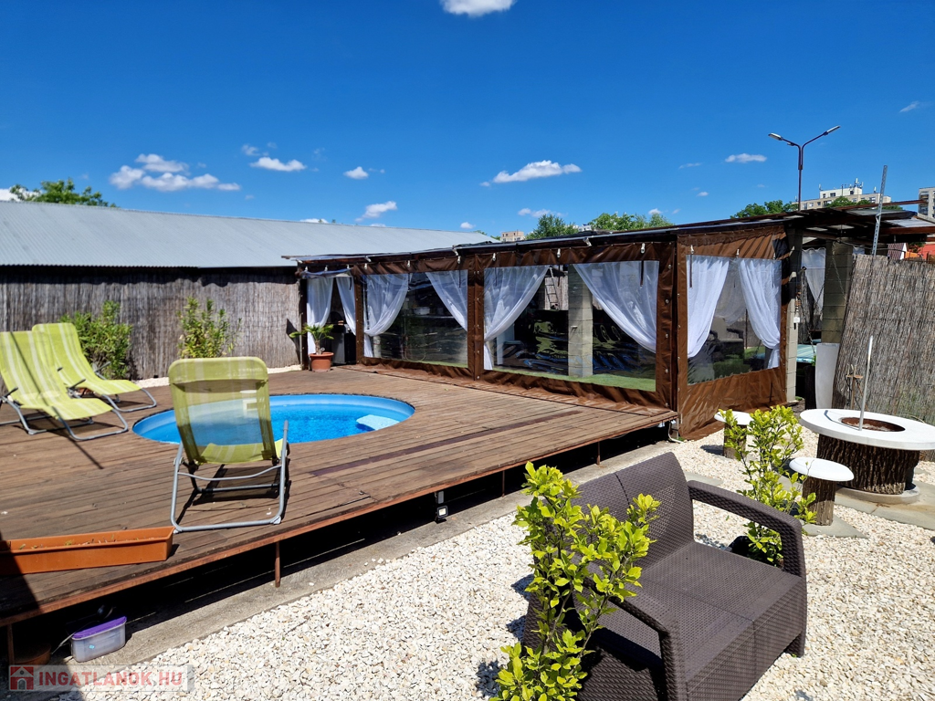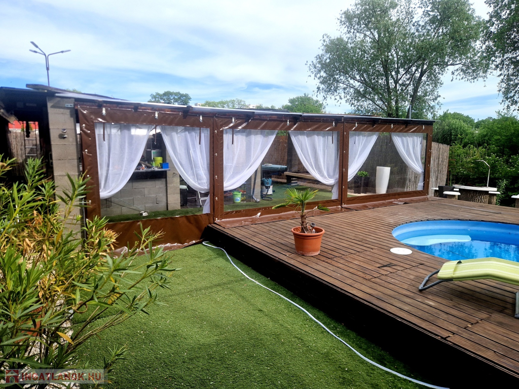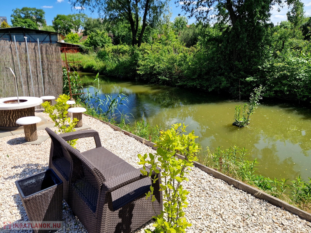 Továbbá az ingatlan területén található 2 különálló, gondozott kert is, ahol hangulatos filagória és medence wellness részleggel biztosítja a pihenést, plusz egy természetes halastó is, ami 20m × 10m-es vízfelülettel várja a kikapcsolódásra vágyókat.