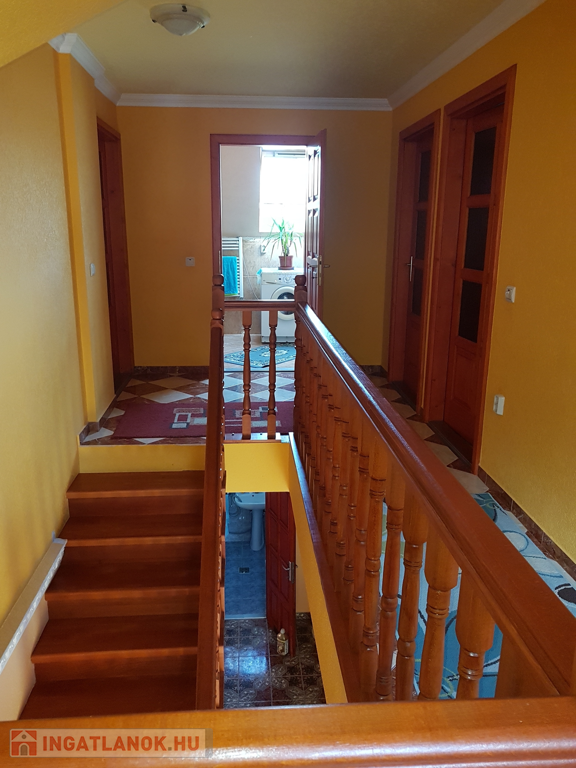 Földszinten: 3 szoba, nappali-konyha, fürdőszoba, wc