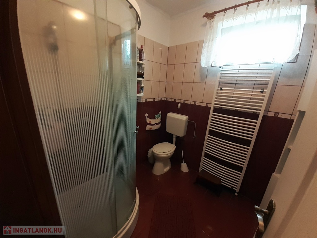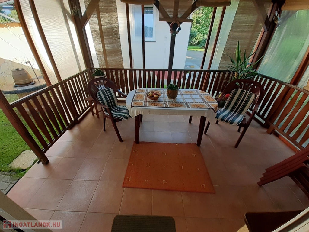 Nappali- konyha-étkező, 2 szoba, fürdőszoba, mosókonyha, kamra található benne, valamint 14 nm-es fedett terasz kapcsolódik hozzá, illetve 3 állásos garázs.