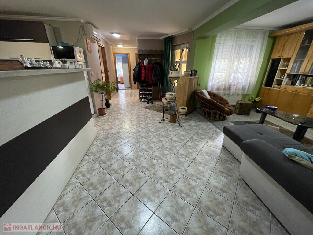 Nyíregyháza–Nyírszőlősön eladásra kínálok egy szigetelt, tégla építésű, 96 m²-es önálló családi házat. Az ingatlan 2050 m²-es telken helyezkedik el, ami két utcára is nyílik, így sokoldalúan hasznosítható, továbbá egy 171 m²-es, csarnok jellegű melléképület is található rajta 6,5 méteres belmagassággal, 8 méter hosszú szerelőaknával és irodahelyiséggel, amely vállalkozás, raktározás vagy műhely céljára is kiválóan alkalmas. A környék központi elhelyezkedésű, a közelben iskola, óvoda, bölcsőde, gyógyszertár, boltok és buszmegálló is megtalálható, mindössze néhány perc sétára.