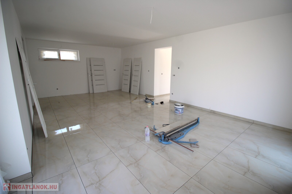 Nyíregyházán Borbányán, aszfaltozott út mentén, új építésű, 127 nm-es, 3 szoba-amerikai konyha-nappalis, tégla építésű, azonnal költözhető, családi ikerház, garázzsal 400 nm-es, udvarral eladó.Főbb paraméterei:- napfényes dél-nyugati fekvés- Porotherm N-F 30-as tégla építés- cserép fedés- külsőleg 15 nm-es szigetelés- 3 üvegrétegű 7 légkamrás műanyag nyílászárók- gáz-cirkós kondenzációs gázkazán (padlófűtés valamint a szobákban radiátoros fűtési rendszerrel).Elosztása: 16 nm-es elektromos kapuval felszerelt garázs, előszoba, 3 külön nyíló hálószoba, amerikai konyha-nappali, 12 nm-es terasz, valamint kertkapcsolat, 2 WC, 2 fürdőszoba, gardrób, háztartási helyiség.Részben térburkolt, igényes tégla kerítés.400 nm-es telek területtel, igényes kivitelezéssel megvásárolható.Az ár 100%-készültségre vonatkozik.Hívjon, ha szeretné megtekinteni!Az ingatlan azonosítója: 65658Érdeklődni: +36204394852 Az ingatlan azonosítója: 65658 Érdeklődni: +36204394852