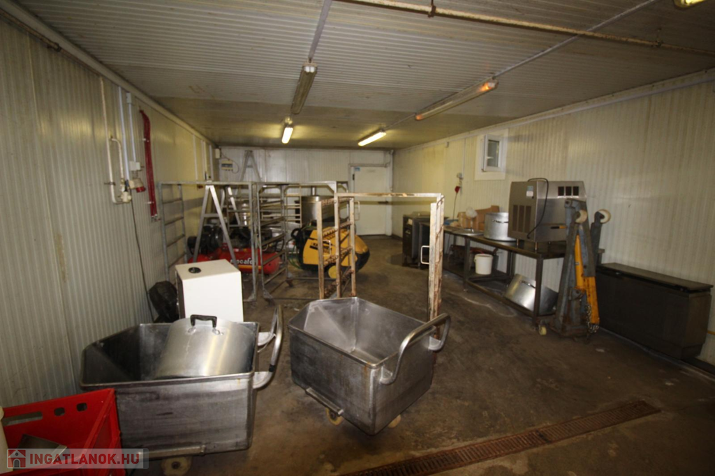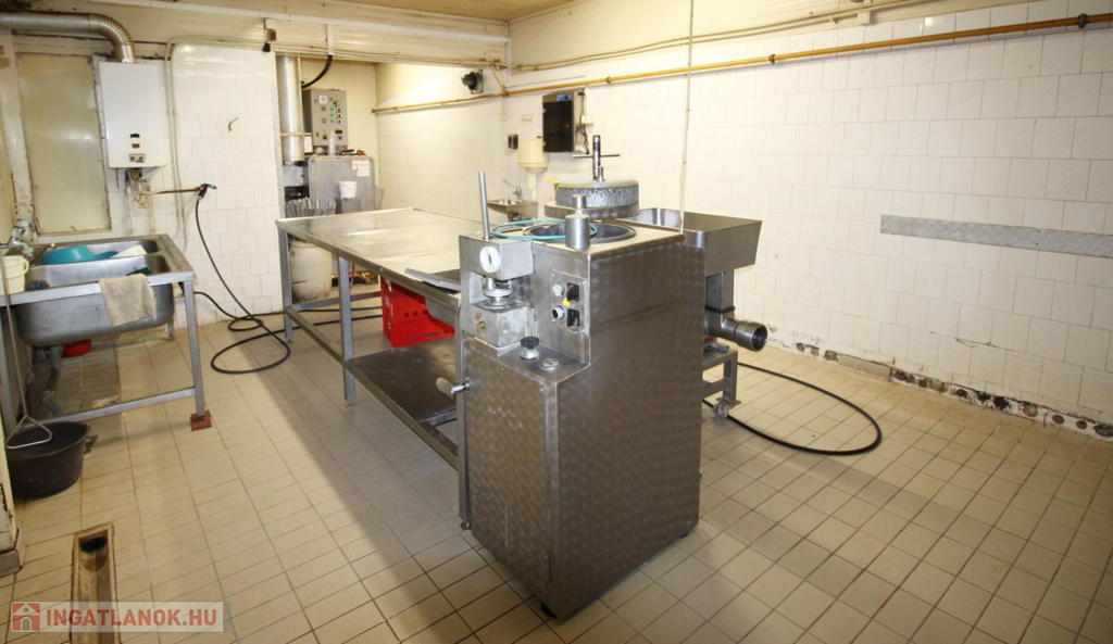 - Amelyben üzlethelyiség, iroda, hűtő és fagyasztókamarák, füstölő, raktárhelyiségek, húsfeldolgozó helységek, öltöző és mosdó kerültek kialakításra.