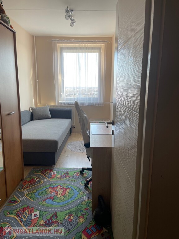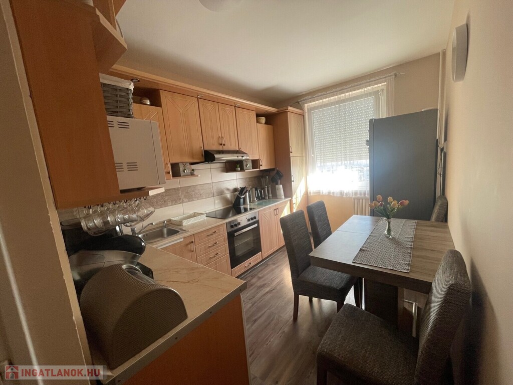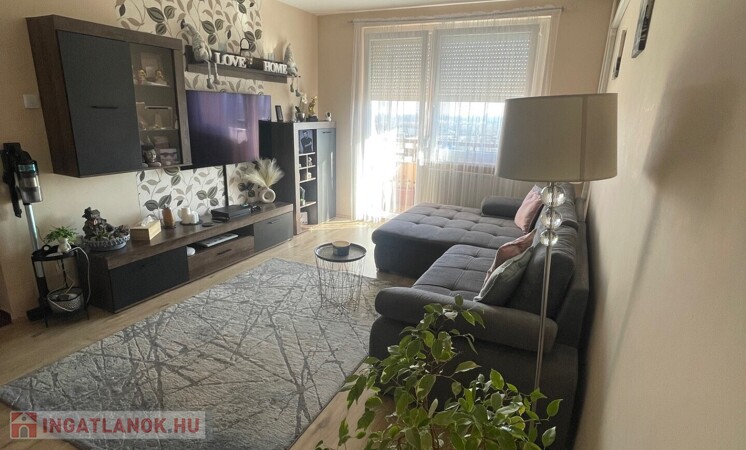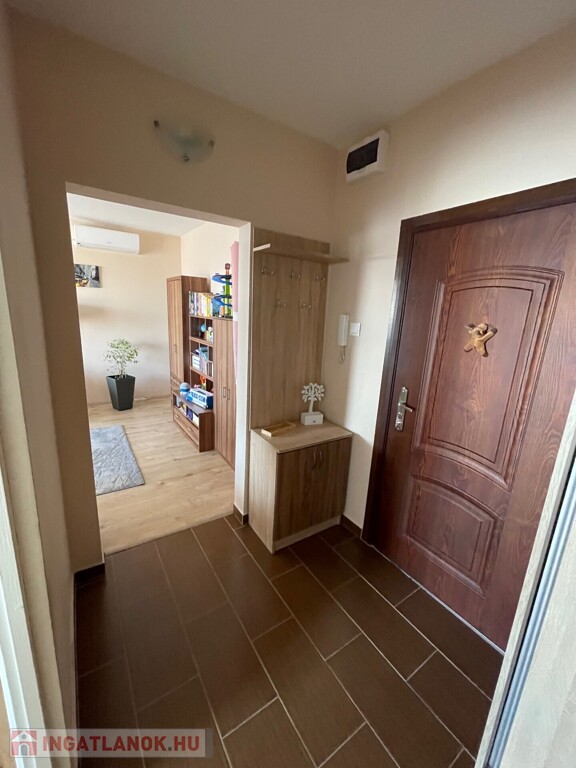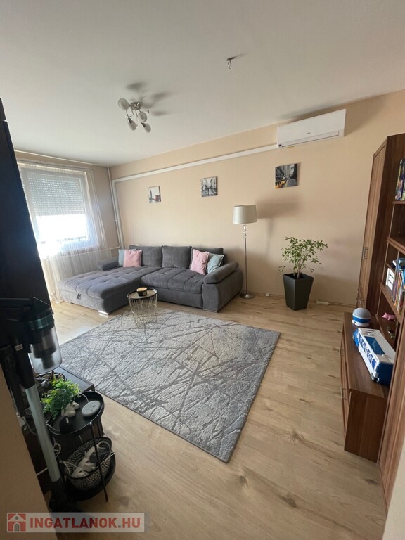 Panel építésű, liftes társasház 7. emeletén található, mért távfűtéses, klimatizált, redőnnyel szerelt műanyag nyílászárós, laminált padló, járólap burkolatú, közös tároló tartozik hozzá.