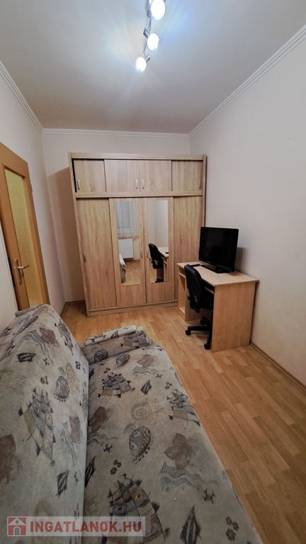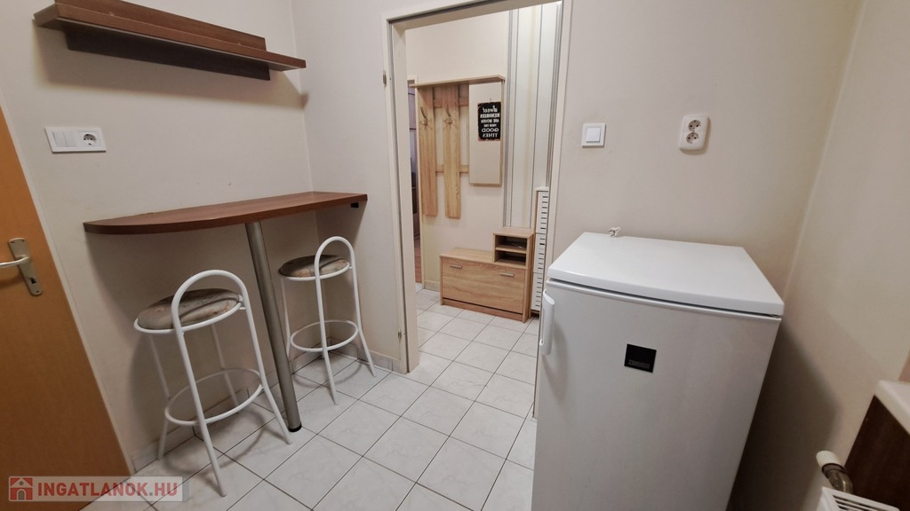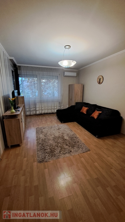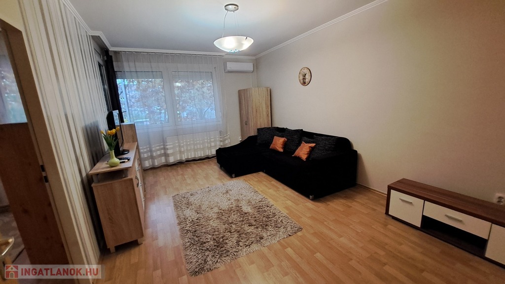 A lakás nappaliból és két külön nyíló szobából áll, a járólapos és laminált padlós helyiségek ápoltak, rendezettek. A fürdő és a WC külön helyiségben található, a spájz és a beépített konyha pedig praktikus megoldásokat kínál a mindennapokban.