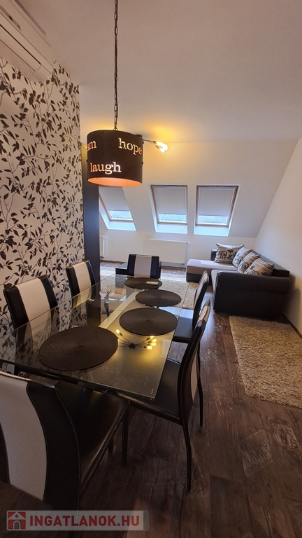 A tetőtéri Velux ablak árnyékolóval felszerelt, a hűtő-fűtő klíma pedig egész évben komfortos hőmérsékletet biztosít. A lakás műanyag bejárati ajtóval rendelkezik, a tégla építésnek és a szigetelésnek köszönhetően energiatakarékos és csendes.